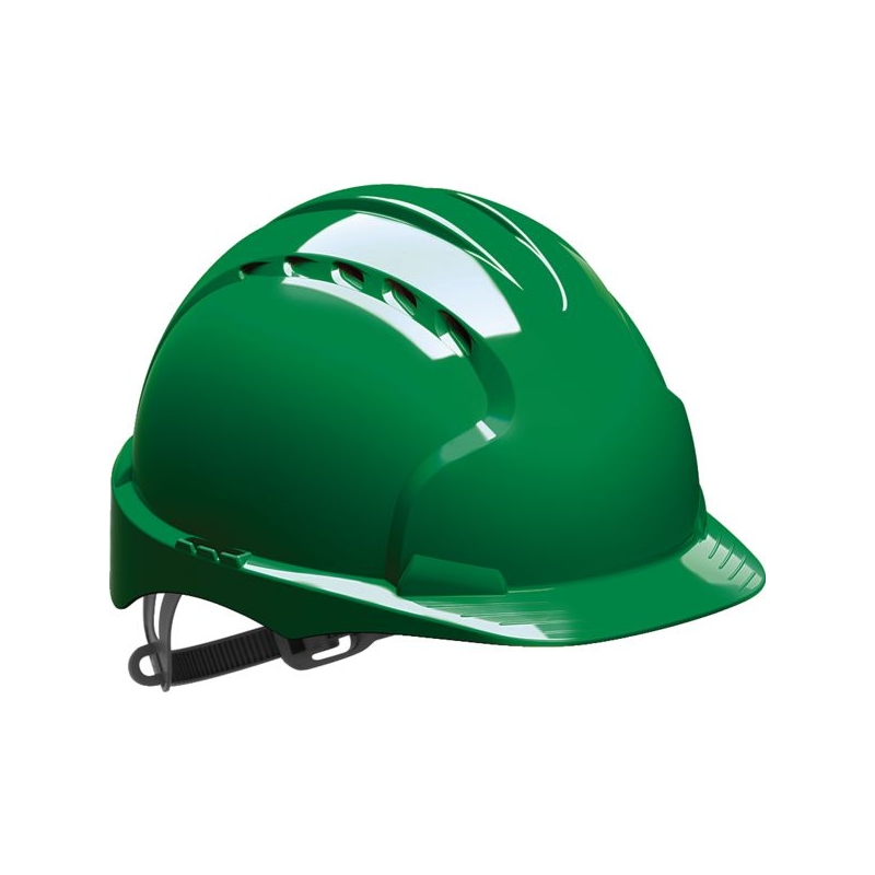 Calotte en polyéthylène haute densité. Visière courte et ventilée. Basane anti-sudation en Chamlon, coton égyptien avec enduit poreux en PU. Serrage glissière. Poids : 375 g Coloris ventilé : blanc, bleu, jaune, orange, rouge, vert Coloris non ventilé : blanc Normes : EN 397 - EN 50365 (1000 V) classe 0