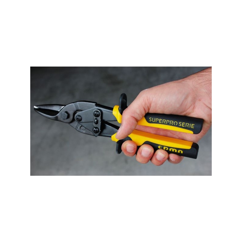Forgée type aviation . Mâchoires forgées dans de l'acier au chrome molybdène. Ouverture automatique d'une seule main grâce au cliquet. Capacités de coupe : - tôle douce : 1,2 mm - inox : 0,8 mm Longueur de coupe : 42 mm