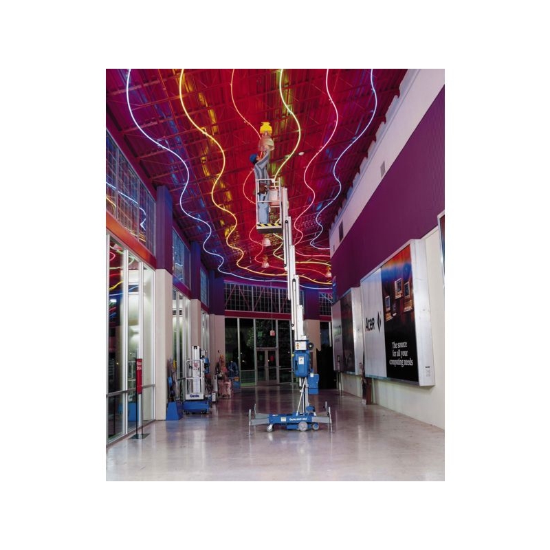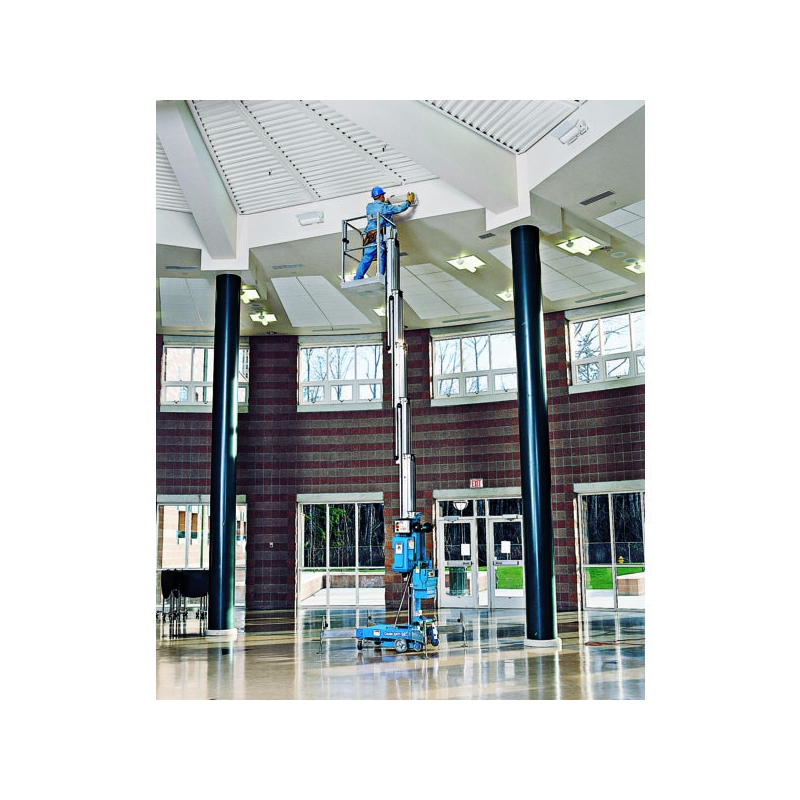 Pour les opérations de maintenance et entretien en hauteur. Léger et portatif. Alimentation sur batterie 12 V DC avec chargeur automatique ou secteur 220 V. Excellente manœuvrabilité, passe aisément les portes industrielles. Largeur avec base standard : 74 cm Capacité de charge : 159 kg Nous consulter pour modèle base étroite ou tout terrain.