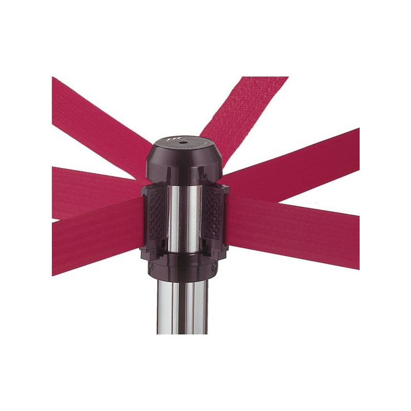 Poteau acier avec base lestée, sangle extensible auto-freinée de 50 mm, tête pouvant recevoir jusqu'à 6 sangles provenant de différentes directions. Hauteur poteau : 980 mm Récepteur mural en option. Autres caractéristiques et sangles personnalisées sur consultation.