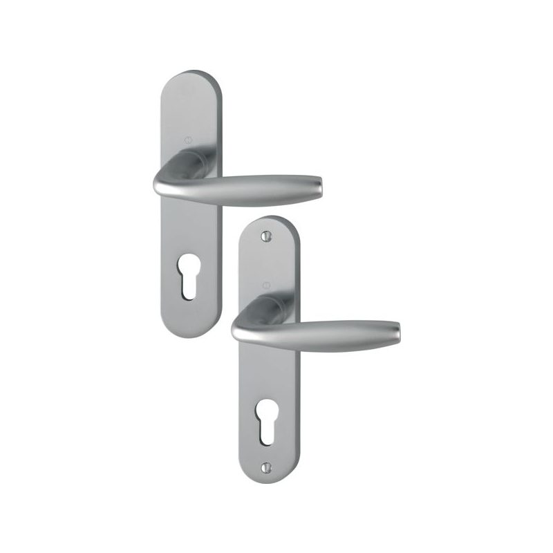 Pour porte intérieure d’épaisseur de 38 à 47 mm. Carré à montage rapide garantissant un montage simple, sans jeu, sans outil et durable. Plaque : 190 x 41 mm (pour entraxe 165 mm) et 234 x 39 mm (pour entraxe 195 mm) Entraxe de serrure : 70 mm Fouillot carré : 7 mm Longueur béquille : 127 mm Saillie de la béquille : 56 mm Finition : aluminium aspect inox Conditionnement : boîte