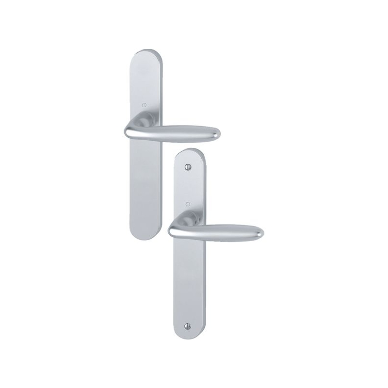 Pour porte intérieure d'épaisseur 38 à 47 mm. Plaque : 234 x 39 mm Entraxe de fixation : 195 mm Entraxe de serrure : 70 mm Longueur béquille : 124 mm Saillie de la béquille : 55 mm Fouillot carré : 7 mm Finition : aluminium aspect argent Conditionnement : boîte