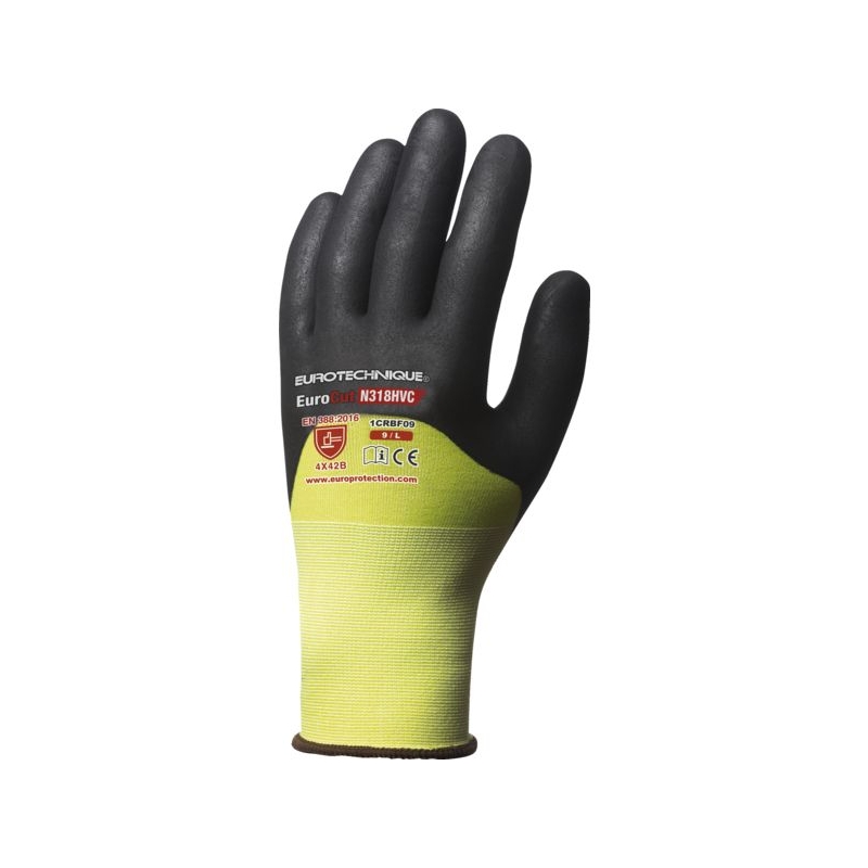 3/4 enduit de nitrile micro-mousse. Support tricoté sans couture en fibres haute ténacité HPPE, jauge 18. Dos aéré, poignet élastique. Risque coupure B Manutention lourde / Milieu humide Applications métiers : assemblage final, manipulation et assemblage de petites pièces ultra-fines et tranchantes, usinage de mélanges de métaux spéciaux, emboutissage de pièces légères, manipulation fine en milieu huileux et/ou d’objets coupants, glissants Taille : 7 à 11 Norme : CE Cat II - EN 388 (4X42B)