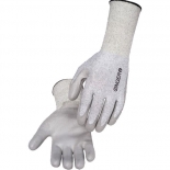 Enduction polyuréthane souple sur la paume. Support tricoté en fibres haute ténacité HDPE (polyéthylène haute densité PEHD), sans couture, jauge 13. Dos aéré, poignet élastique long avec renfort. Renfort entre le pouce et l'index. Risque coupure D Manutention légère / Milieu sec Applications métiers : manutention de tôles coupantes, fabrication de tôles, assemblage automobile, maintenance industrielle, prise de câbles, d'objets coupants, manipulations de matériaux bruts, abrasifs, de carrelages, de céramiques Taille : 8 à 11 Norme : CE Cat II - EN 388 (4X43D)