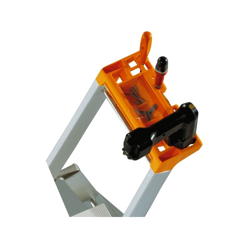 Usage ultra-intensif. En aluminium anodisé. Marches striées antidérapantes de 90 mm et espacées de 220 mm. Plateforme en fonte d'aluminium de 280 x 250 mm. Sabots enveloppants haute sécurité. Porte-outils avec couvercle clipsé. Crochet porte-seau intégré. Modèles 10 marches avec rampes. Charge maxi : 150 kg Norme : EN 131 - décret 96 333