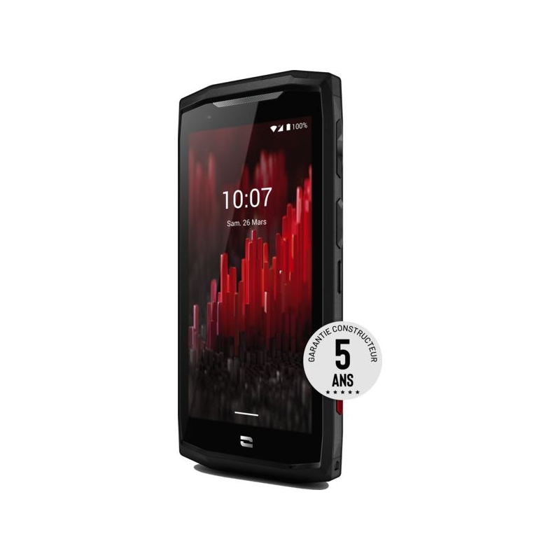 Étanche, résistant et endurant. Double NanoSIM ou NanoSIM+ Micro SD. (extension 512 Go). Haut parleur 100 décibels. Système : Androïd AER. Mémoire de stockage : 3 Go RAM Mémoire : 32 Go. Écran : 4.95 pouces. Réseau : 4G+, WIFI, Bluetooth, NFC. Photos : 13 et 2 mégapixels. Batterie : 4000 mAh. DAS : tête 1.54W/kg, corps 0.78 W/kg, membres 1.83 W/kg. Indice de réparabilité 8.8/10 + pièces détachées disponibles 10 ans Le prix de vente HT comprend 10 € de SORECOP.