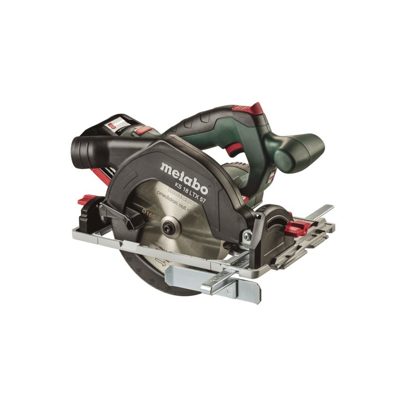 Fonctionne sur batterie 18 V. Plateau en aluminium directement utilisable sur des rails de guidage. Frein de rotation de la lame. Coupes en biais à 50°, avec point de crantage à 45°. Position 0° réglable pour une précision de coupe maximale. Poignée Soft Grip. Plage d'inclinaison : 0-50 ° Profondeur de coupe réglable : 0-57 mm Profondeur de coupe max. à 45° : 43 mm Profondeur de coupe max. à 90° : 57 mm Dimensions : Ø 165 mm, alésage 20 mm, 18 dents Vitesse : 4600 tr/mn Poids : 3,400 kg Livrée en coffret Metaloc avec lame de scie circulaire carbure, guide latéral, clé de service, sans chargeur ni batterie.