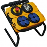 Protection différentielle par disjoncteur 30 mA - 230 V et 1 dispositif d'arrêt d'urgence. 8 prises 2P+T - 16 A - 230 V à volet d'obturation. 5 m de câble H07RNF 3G2,5 mm². Puissance : 3 680 W Indice de protection : IP 44 Norme : NFC 15100