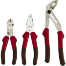Poignées bi-matière. Composé de : - 1 pince multiprise à verrouillage, - 1 pince coupante diagonale, - 1 pince à becs 1/2 ronds.